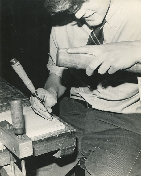 Stuart Emmons cutting dovetails, 1972