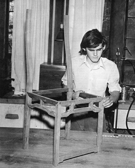 Stuart Emmons with Chinese chair he was making, 1973