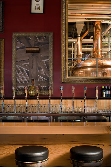 The Bar, taps, and brewing tanks beyond