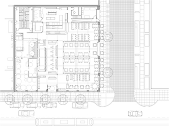 A sleek copper canopy lures you in, a hint of heavy timber showing through the circle above. Enter to a large framed picture of tanks. This is a Brewery. Turn and see a gigantic piece of timber at the host stand. This is Oregon. And then, more and more frames as you look further. The huge red framed walls are influenced by a Scottish pub - but this time, not only images are framed, but everything is framed: windows looking to the brewing tanks, TV’s, mirrors, just everything, even ductwork. Walk to the Dining Room where four large dining cubes scale down the large space and make rooms, like a Scottish Pub. My family’s tartan is on the floor. The cubes’ entry gates are a little wild, depicting Oregon mountain scenes and wildlife, carved by a chainsaw. Children already love the beavers and chipmunks. The Bar is sized to build coziness, with a fireplace and a huge single piece of heavy timber for the bar. Being set at the center, the energy of the bar area pours over the whole Pub. Walk through the kitchen, a purposeful step to make the chefs part of the party and customers part of the kitchen, past the brewery, the towering trophy wall reaching to the sky, the infinity room, and finally to the men’s room, with its massive porcelain urinals and skylight looking up through the timber roof to the grain silo.