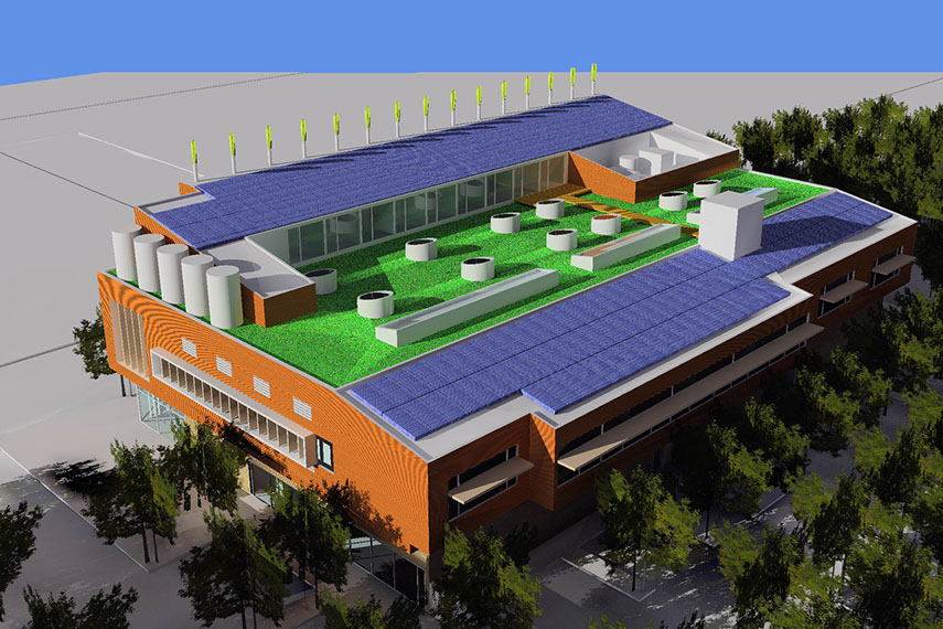 The East County Courthouse was designed to attain the highest LEED rating and be essentially off-grid, by both making its own energy and minimizing energy use. It was sited to maximize solar light and heat and prevailing winds. Shade trees helped reduce heat gain on the building in the summer. The Courthouse maximized the use of natural light, was super insulated, and received power from solar, wind, and geothermal sources. Potable water was conserved as much as possible. Grey water and rain water systems were included, as well as water recycling facilities. Minimizing the demand for city water and load on the City’s sanitary sewer system was a goal. Waste would be carefully managed to maximize recycling. And, there would be an ongoing program for sustainable building use when the Courthouse becomes occupied.