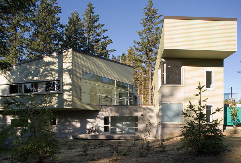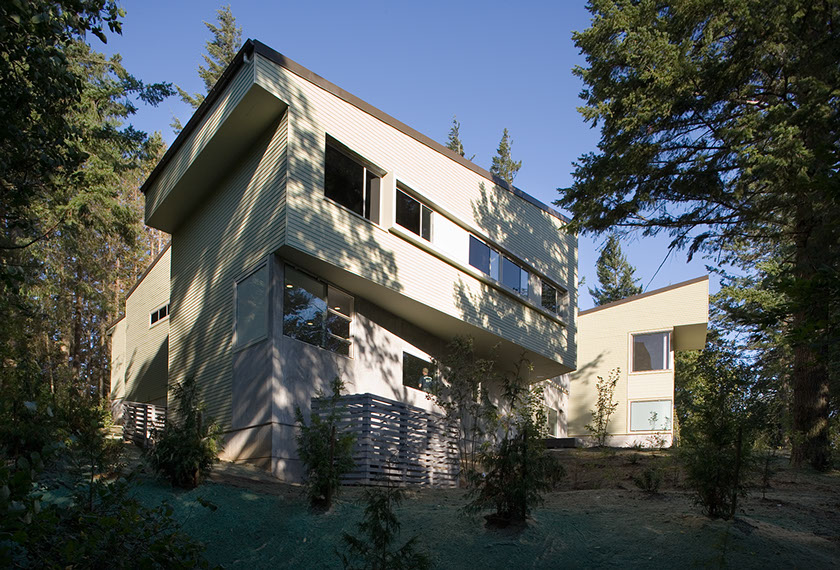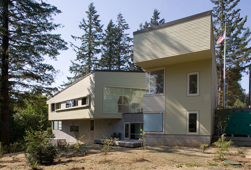 The Oregon forest sets the stage. Fir trees tower over the site. The built work is compact, and the rest of the area is undisturbed. The new place touches the surroundings gently. The site is on beautiful Skyline Boulevard – a meandering rural road that is beginning to feel the push of urbanism. Forest, farms, rock retaining walls and fruit orchards define Skyline just as they define the project.