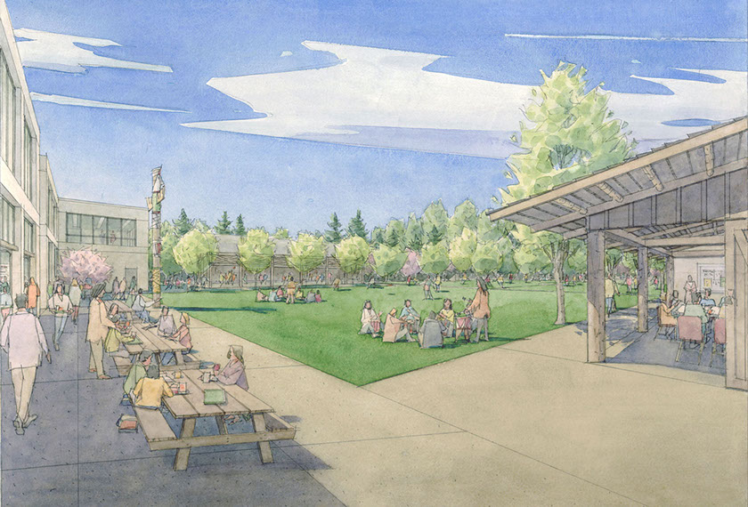 The NAYA School Master Plan (also known as Neerchokikoo), is a sustainable campus master plan for NAYA on the former 10 acre Whitaker Lakeside School campus on Columbia Boulevard in Portland. The campus plan reuses the existing high school and adds a Sustainable Vocational School, Longhouse for community gatherings, and a new super sustainable Services Building. The campus is reconfigured to focus the buildings on the Whitaker Ponds wildlife refuge to the north. Here are some quotes from the book made by Emmons: