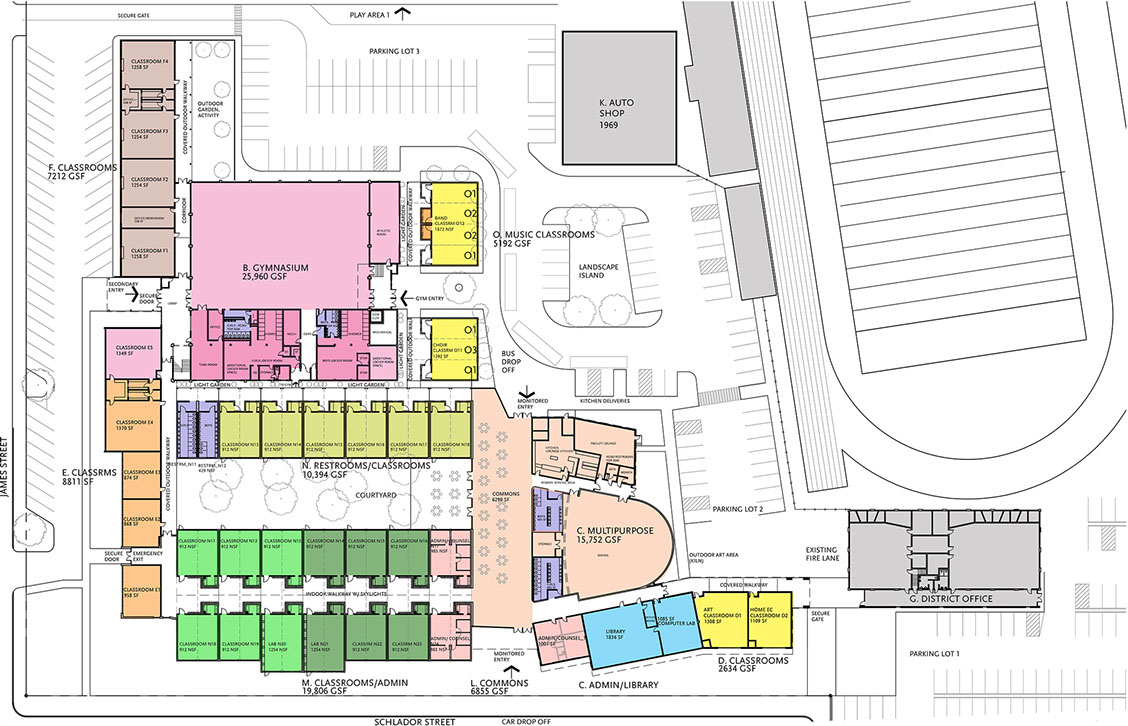 The Silverton School project was a master plan project aimed at upgrading the entire existing high school campus through a combination of existing building remodel and replacement. The goal was to give the Silverton School District a school that was modernized and safe at less cost than full new construction. The entire site was redesigned to improve safety, both for students being dropped off, walking around the campus and for the security of those within the school buildings. The school was designed for 750 students.