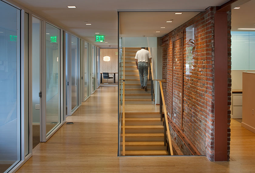 The design of the project features natural elements like bamboo, and large glass skylight fixtures to complement the historic brick features of the building.